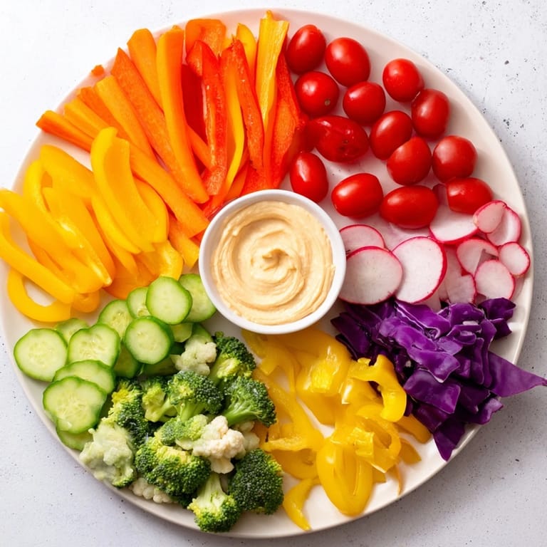 Save A vibrant and healthy assortment of fresh vegetables arranged in rainbow order, perfect for snacking, parties, or as an appetizer platter.
