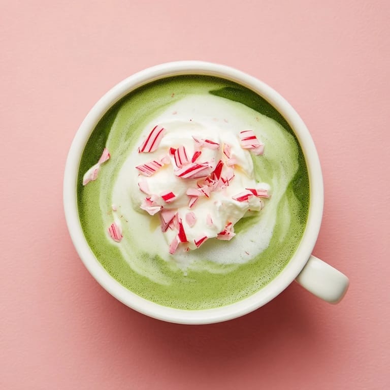 Save A festive, creamy latte that combines earthy matcha with cool peppermint, perfect for cozy winter mornings or holiday gatherings.