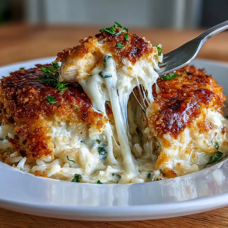 Save My kitchen filled with steam one Tuesday evening when I decided to stop overthinking dinner and just combine everything I had on hand into a single dish. The result was this creamy garlic chicken and rice casserole, a happy accident born from laziness and a half-empty fridge. What emerged from the oven surprised everyone at the table—it had that soul-warming quality of comfort food, but with garlic and cheese depth that made people ask for seconds. That night, my partner declared it was the kind of meal you could make without thinking, yet it tasted like you'd been planning it all day.