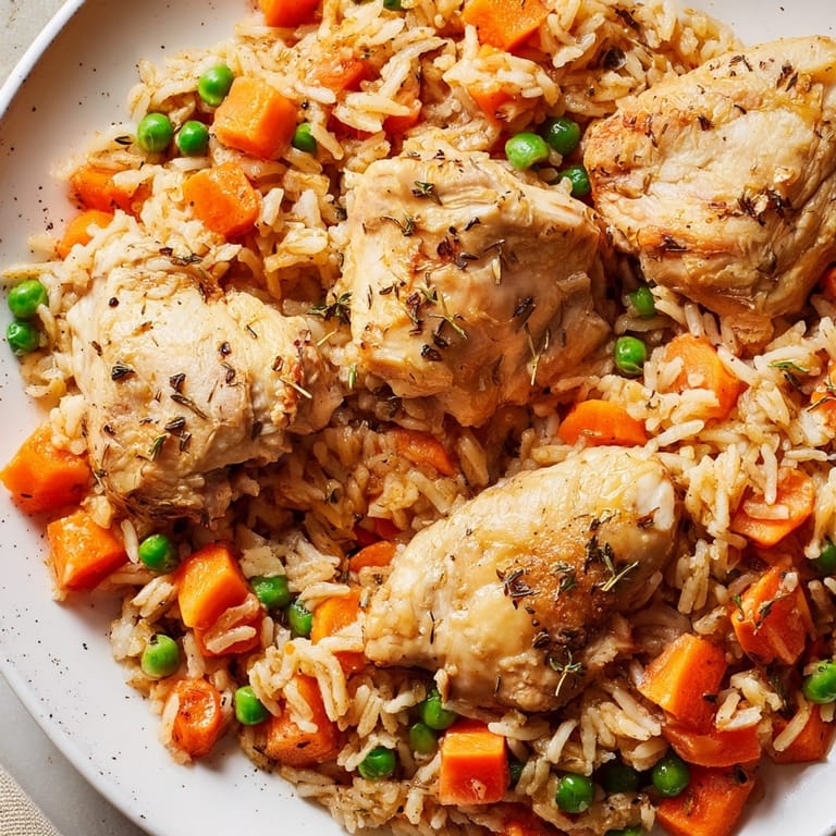 Swap chicken thighs for chicken breasts if you prefer a leaner option or substitute with plant-based alternatives like firm tofu for a vegetarian meal Any mixed frozen vegetables can replace the peas or carrots for added variety Just be sure to keep total veggie volume about the same so the rice cooks evenly