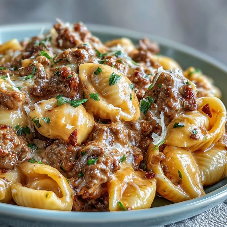 Save There's something about a one-pot meal that feels like a small victory at the end of a long day. I discovered this creamy beef and shells recipe on a Tuesday evening when I was staring into an almost-empty pantry, mentally calculating how many frozen pizzas I could justify ordering. Ground beef, pasta shells, and some cream in the fridge suddenly seemed like the universe handing me a solution. Twenty-five minutes later, my kitchen smelled like a cozy Italian-American dinner, and I realized I'd just stumbled onto something that would become a weeknight staple.