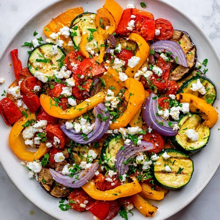Save My tiny apartment kitchen smelled incredible—roasted vegetables mingling with garlic and lemon. I'd been experimenting with warm salads, something between a traditional Greek salad and roasted vegetables, and this combination hit differently. The way the feta softened slightly against the still-warm peppers changed everything.