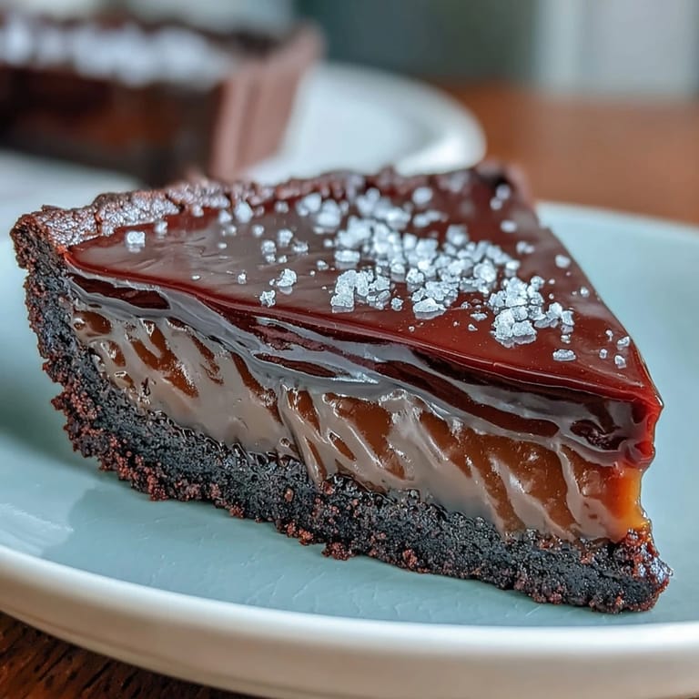 Before serving, sprinkle a fresh layer of flaky sea salt on top for visual contrast and flavor. For the cleanest slices, dip your knife in warm water and wipe it dry between each cut. This tart pairs beautifully with a glass of tawny port or a cup of dark roast coffee to complement the richness of the chocolate.