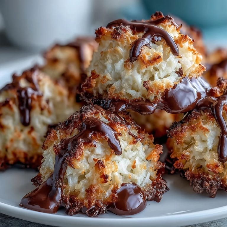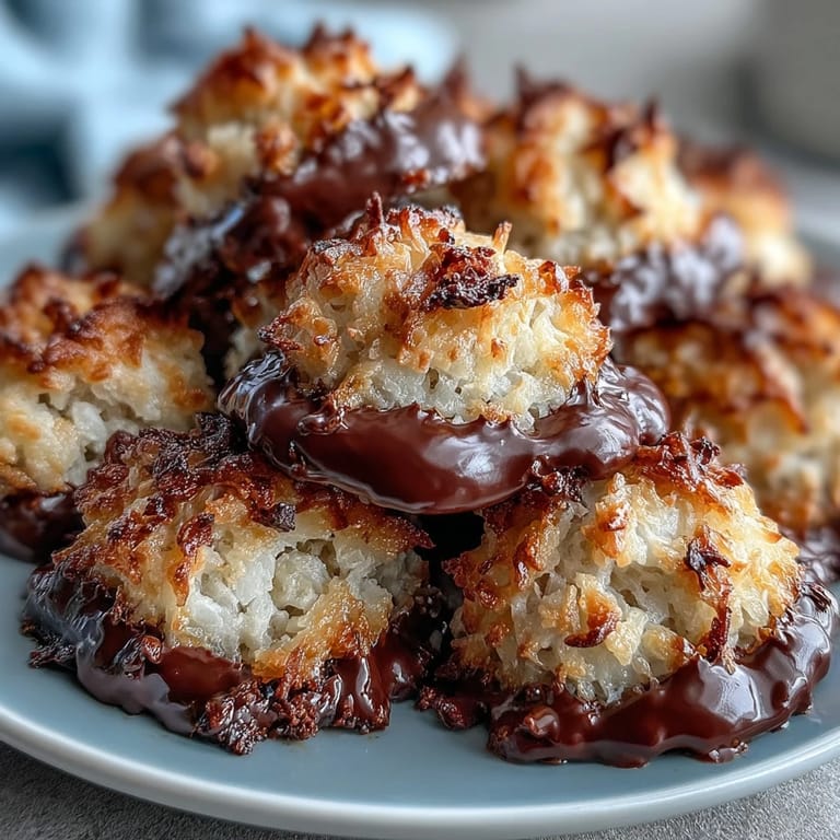 Save I discovered these coconut macaroons completely by accident when I was experimenting with vegan desserts for a friend's birthday party. She'd mentioned offhandedly that she missed the chewy coconut treats from her childhood, and I thought, why not make something that tastes indulgent without any dairy involved? The first batch came out golden and perfectly chewy, and when I drizzled that dark chocolate on top, it felt like I'd stumbled onto something really special. My friend's face when she tasted one made the whole experiment worthwhile.